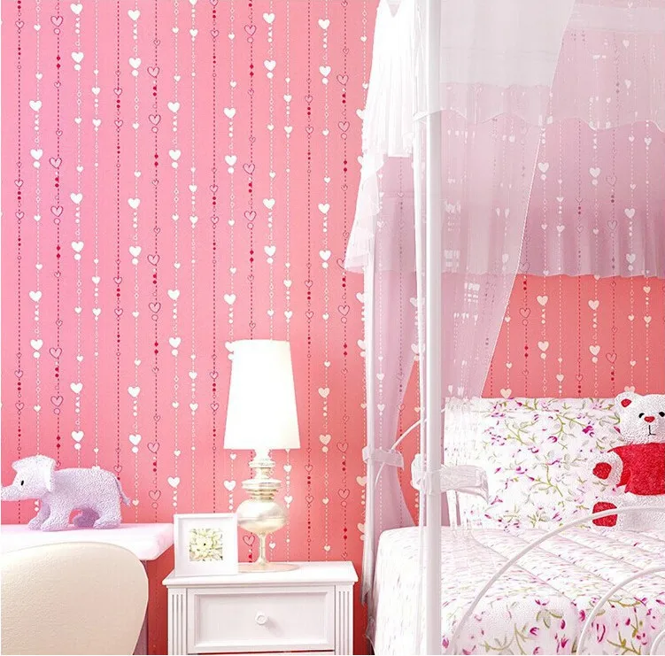 Beibehang Non Woven Pink Love Printed Wallpaper Roll Striped Desig