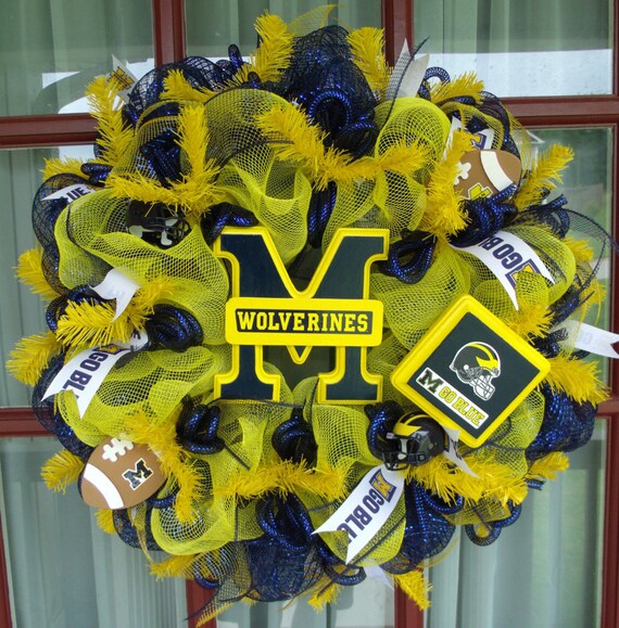 Beautiful Michigan Wolverine College Fan Deco Mesh Door Wreath Etsy